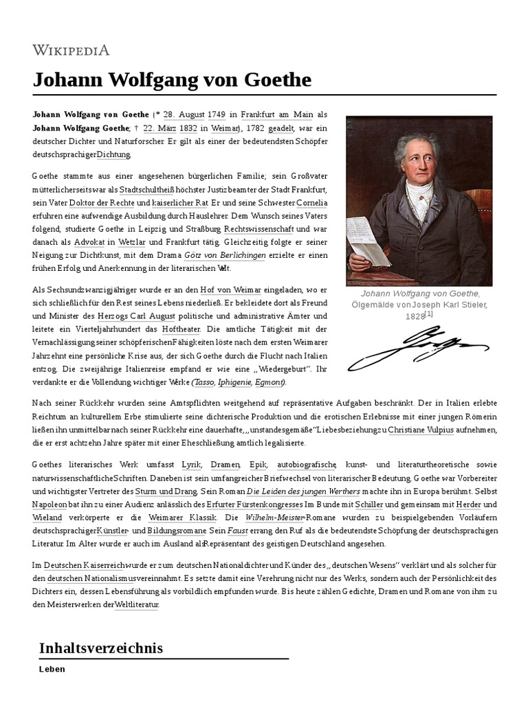 Das von erhlt er als er 1782 geadelt wird. Mit der Tragdie Faust schuf Goethe. Biografie Johann Wolfgang von Goethe Lebenslauf Der deutsche Dichter Johann Wolfgang von Goethe wurde am 28.
